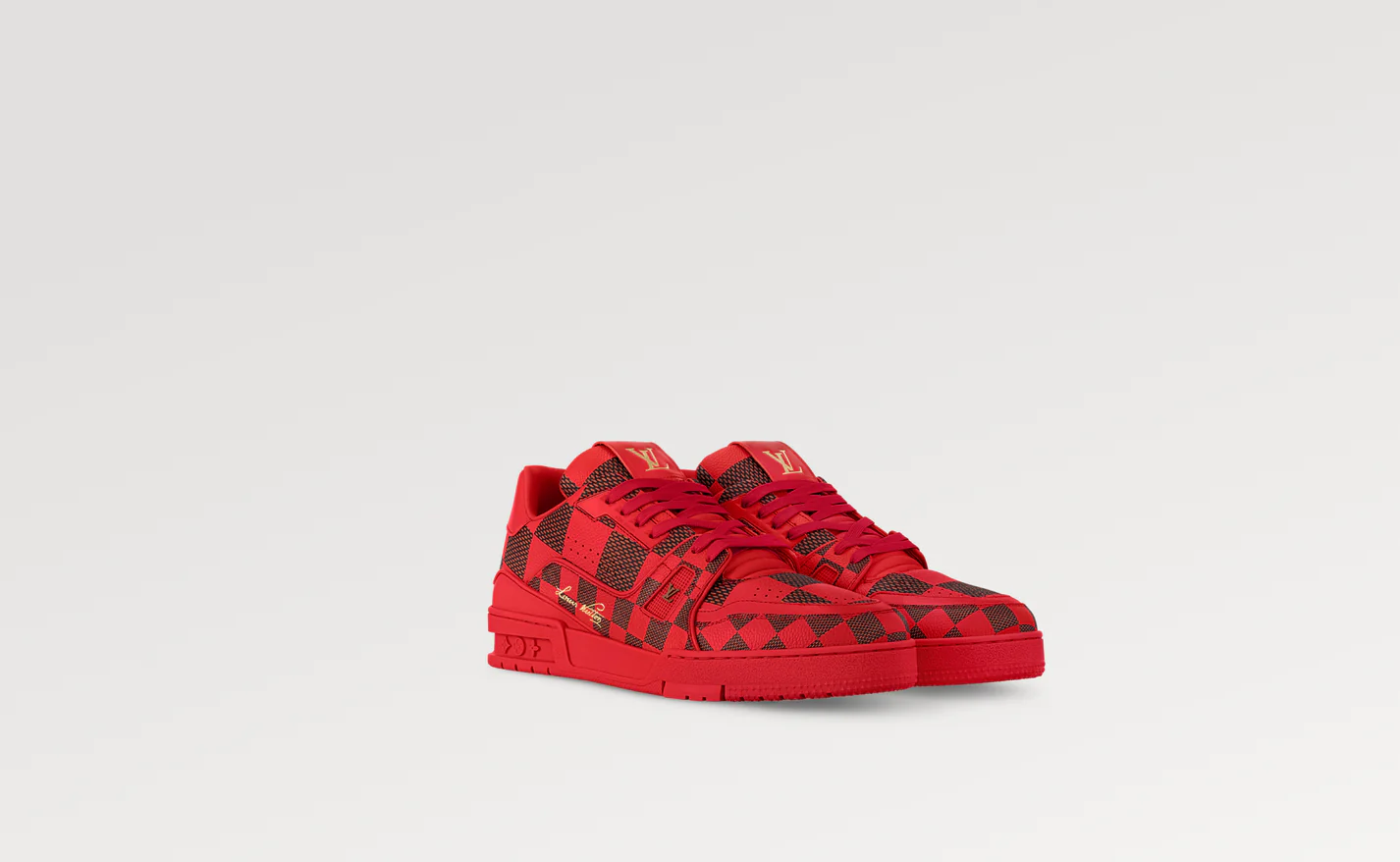 This first LV Trainer sneaker designed by Men’s Creative Director Pharrell Williams comes in calf leather printed with the season’s key Damier Pop pattern. This cult model was inspired by vintage basketball sneakers and features an elaborately constructed upper which takes seven hours to stitch. The tonal rubber outsole is decorated with Monogram Flowers.